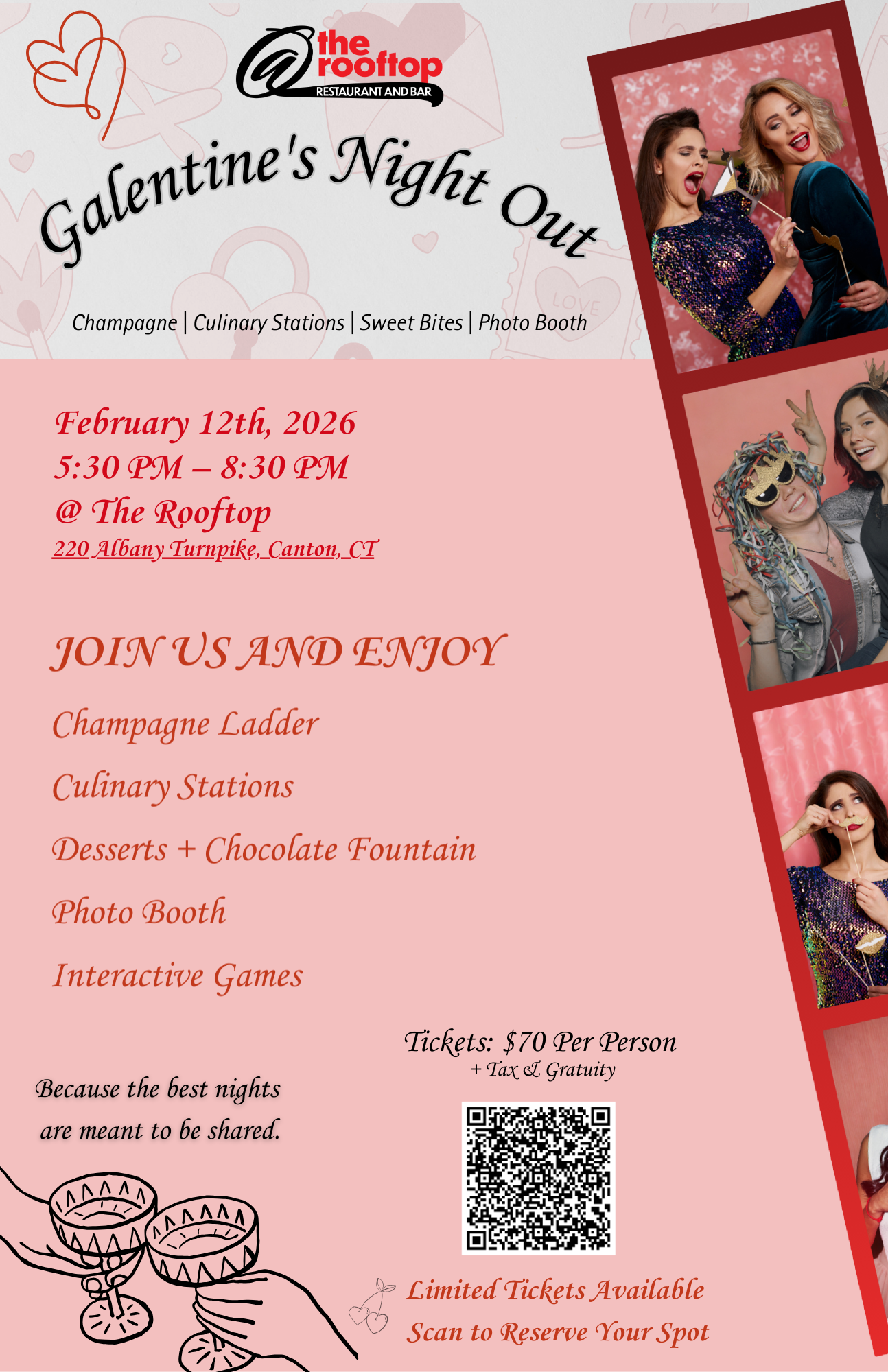 Zen Restaurant Group invites you to Galentine’s Night at The Rooftop, a ticketed, cocktail-style social event hosted at The Rooftop Restaurant & Bar in Canton.
